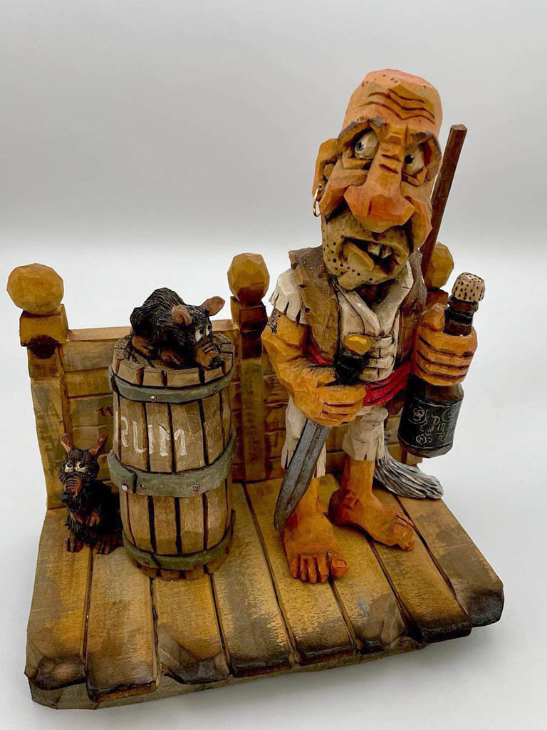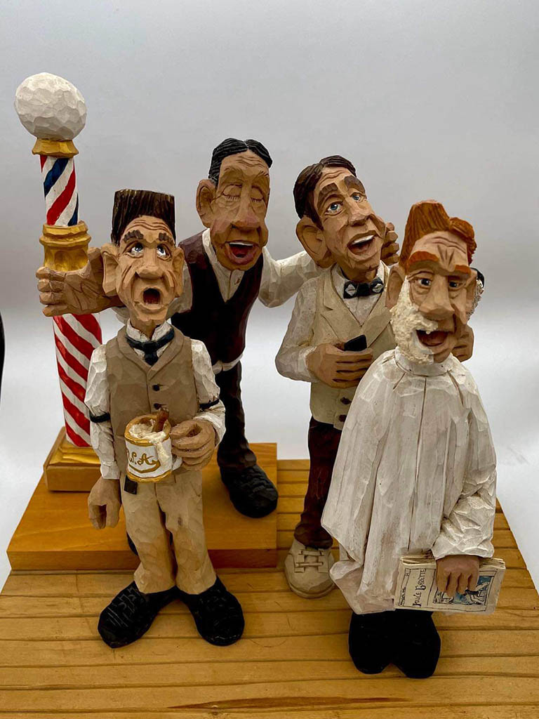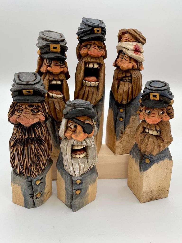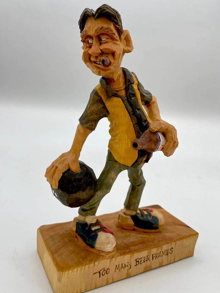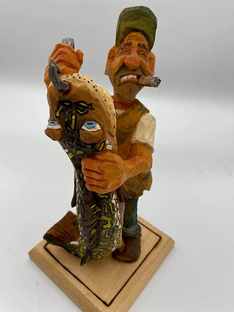 Early on Bruce developed an interest in carving caricatures because they always brought a smile to those who saw them. It is very rewarding for Bruce to take a piece of basswood and find the guy that is in there and let him out. There’s always an idea in his brain waiting to be carved and he finds it to be the most relaxing thing to be working on something that he wants to carve!