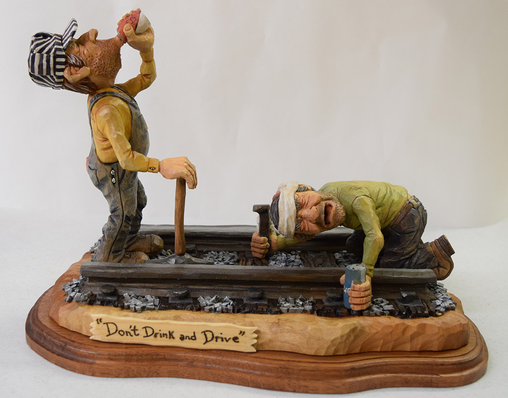 After a few years I started designing and carving my own caricature figures, some of which have been published in Carving Magazine and Wood Carving Illustrated. My carvings have won numerous First Place and Best of Division awards, including “Best of Show” at the 2012 and 2014 Caricature Carvers of America competition and Editor’s Choice Nominee for Best Design, Wood Carving Illustrated Magazine. In 2014 I was inducted into the Caricature Carvers of America an honor that remains a high point in my life. I enjoy creating a humorous scene that tells a funny story. The highest compliment I receive is when one of carvings puts a smile on someone’s face.