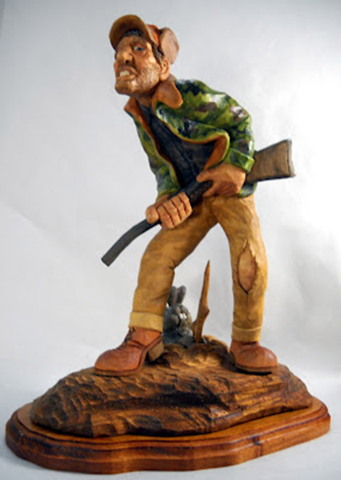 I was determined to learn everything about wood carving and took advantage of all the local classes and then hit the road to attend classes taught by the most recognized carvers. After trying many styles of carving, it didn’t take long to realize that caricature carving was for me. I began to focus all my interest and time in caricature carving classes. My house is full of carvings I have done with Phil and Vicki Bishop, Steve Prescott, Dave Stetson, Cleve Taylor, Pete LeClair and Harold Enlow. These classes were informative and fun, each teacher lending their own brand of humor. I have had many mentors over the years and learned a great deal from each one of them.