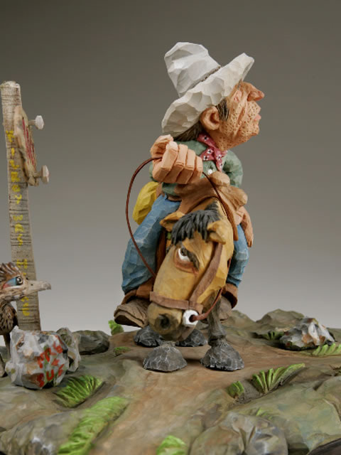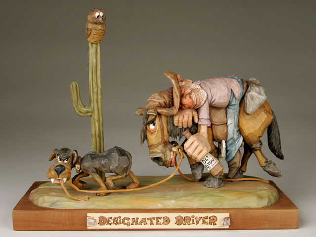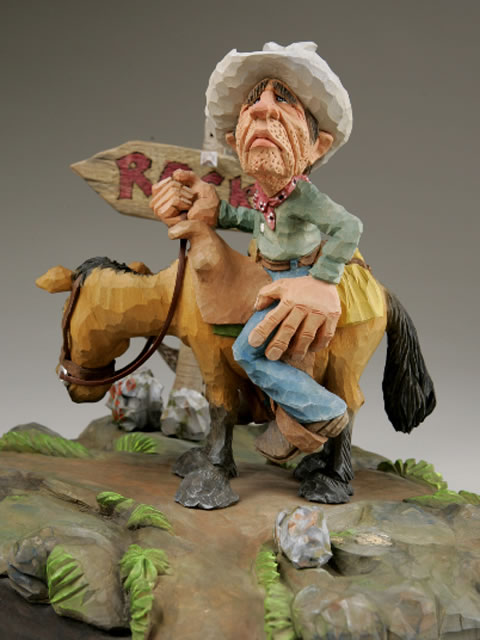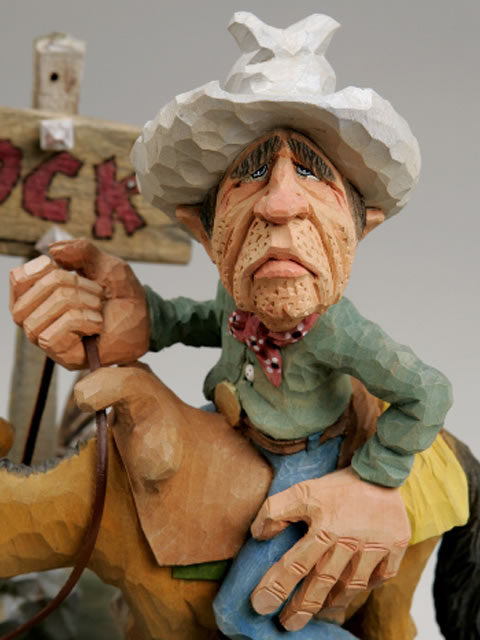 After serving in the US Marines, Dave Dunham graduated from the University of Texas and obtained his Master’s from Baylor University. He was a Diplomat of the American Board of Orthodontics and maintained an active practice in Cleburne, Texas for 27 years until his death in 2004. Dave’s extensive studies in human anatomy stimulated his interest in carving facial features and expressions. Dave’s unique style of caricaturization is easily recognizable, and set the standard for carving expressions in wood. He rarely sold his work, but several pieces made their way to private collections. With the Caricature Carvers of America, Dave co-authored several books on carving, and taught his unique brand of carving throughout the United States and Canada.