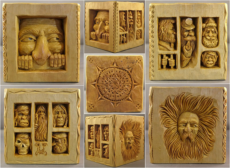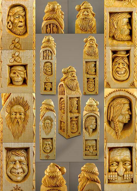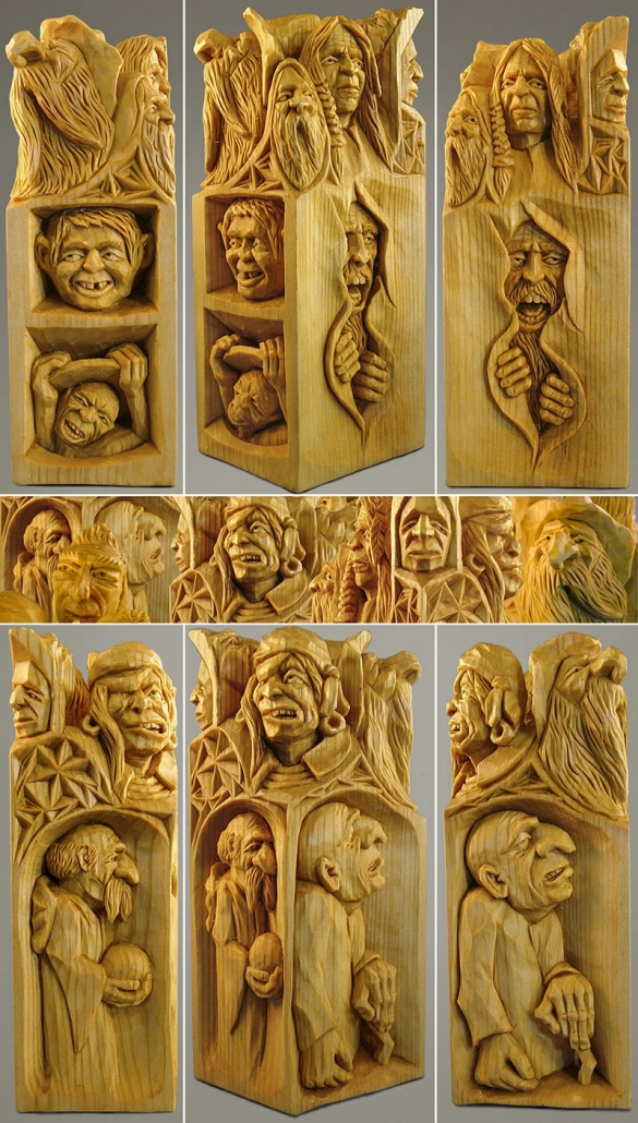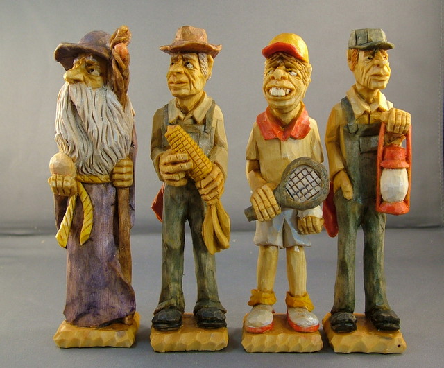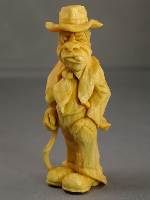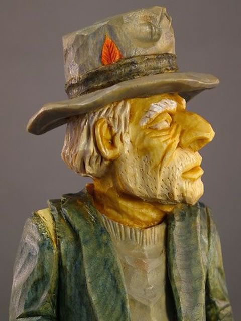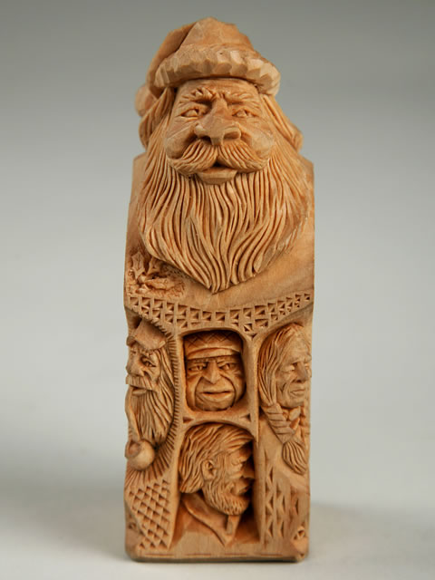 Whittling is an art of the common people often self learned, so it is natural to call his carving process “Whittle Folk Art.” His subjects are called “Whittle Folk” be they “Whittle Folk Geezers, Whittle Folk Gnomes, Whittle Folk Monks, Whittle Folk Busts, Whittle Folk Eggs, Whittle Folk Shelf Squatters or Whittle Folk ‘Pokes’.”