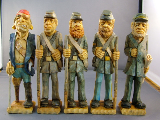 The fine detail of various whittling cuts creates an “Exaggerated Realism” in figures six inches tall down to miniatures. The WOOD BEE CARVER, who began whittling as a boy growing up on a farm three miles south of Poneto, Indiana continues to be a would be carver always learning through the carving process as he has discovered that “wood carving is more the journey than the destination.”