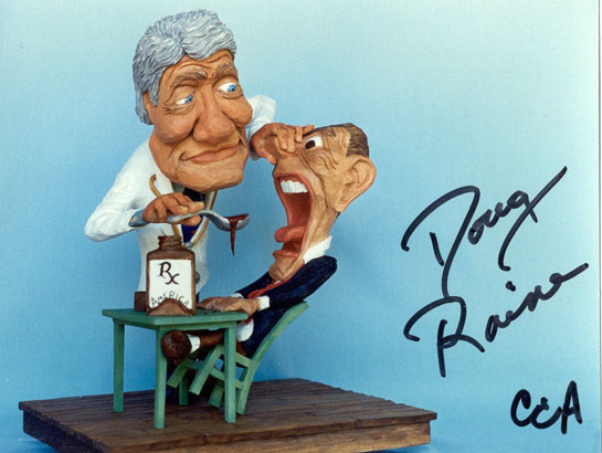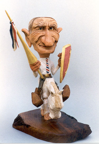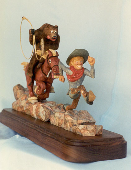 Doug began carving when he was not tending to chores on the family farm. At 16, he shipped out on a Great Lakes freighter and passed the time during off-duty hours carving small figures. After graduating from college, he joined the U.S. Air Force and became a jet fighter pilot. He earned two combat decorations in Korea and again found himself passing time woodcarving. Doug later worked as an elementary and junior high principal. He was active in Boy Scouting with his son, and campouts often found him carving a caged ball and chain for the fascinated Scouts.