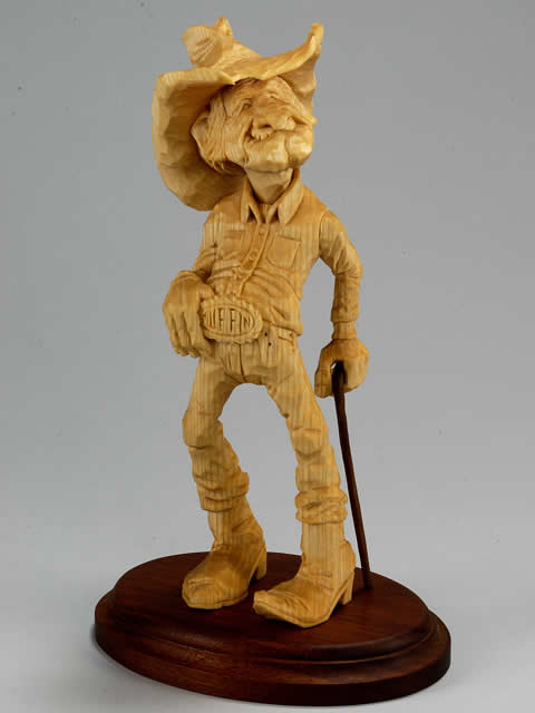 Gary is a very versatile carver. Not only has he been a consistent winner in the whittling competition at Dollywood but also a regular winner in Dollywood’s Great Pumpkin Carving Competition. In addition, he demonstrated pumpkin carving at Dollywood’s Harvest Festival for five years. He has become nationally known and was a featured carver in the book “Carving Found Wood” and has also written two step-by-step articles, “Pass the Bacon”, for Woodcarving Illustrated Magazine.