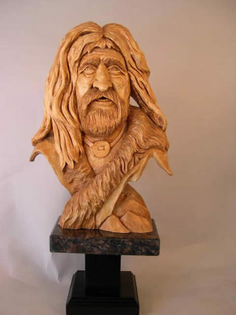 Harley specializes in human, free standing, deep relief, using 1″ and 2″ thick boards and making the carving appear as if it is in the round. He likes to describe them as semi-realistic with alot of character.