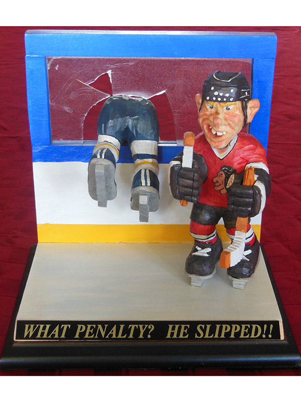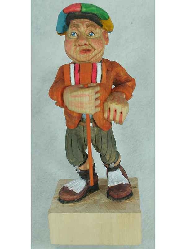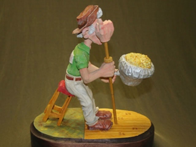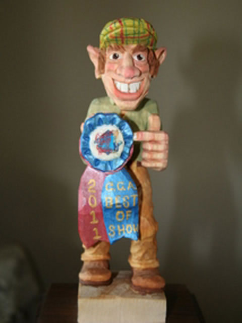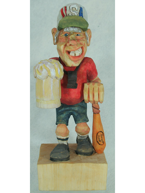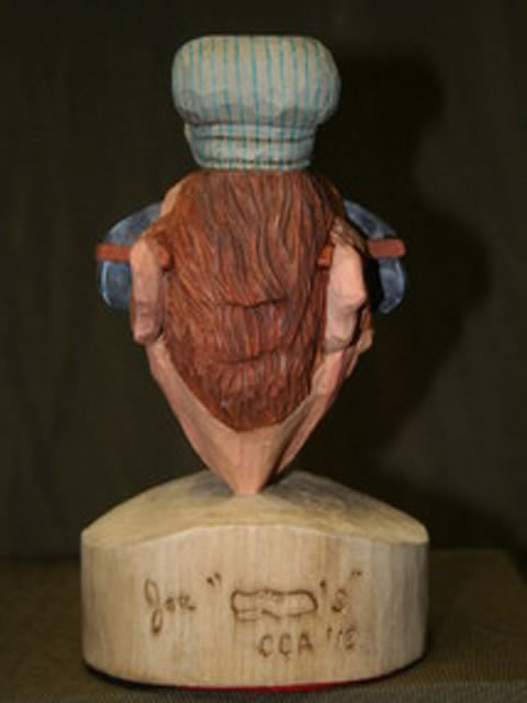 Joe got interested in woodcarving watching carvers demonstrate their art in the early 70’s in the Valley Road Woodcarving shop at Silver Dollar City in Branson, Missouri. He began carving in 1990 later joined the St. Louis Area Woodcarvers, the Belleville Holzschnitzers and the Affiliated Woodcarvers Congress. He has taken over 120 classes, 28 of which were with past and present members of the C.C.A. and continues to learn to this day with clay, stone carving, caricature drawing, and woodcarving classes. Joe became a member of the C.C.A. 2005. He lives in Imperial, Missouri, with his wife Fran. They have four sons Joey, Matt, Jon, and Nick, two daughters in law and 4 grand daughters. He enjoys traveling with his wife, Fran. He likes to instill humor in to his carvings and watching the smiles it puts on the people who view his carvings.