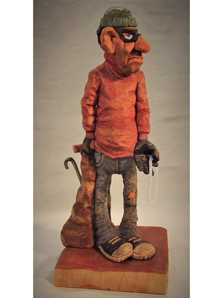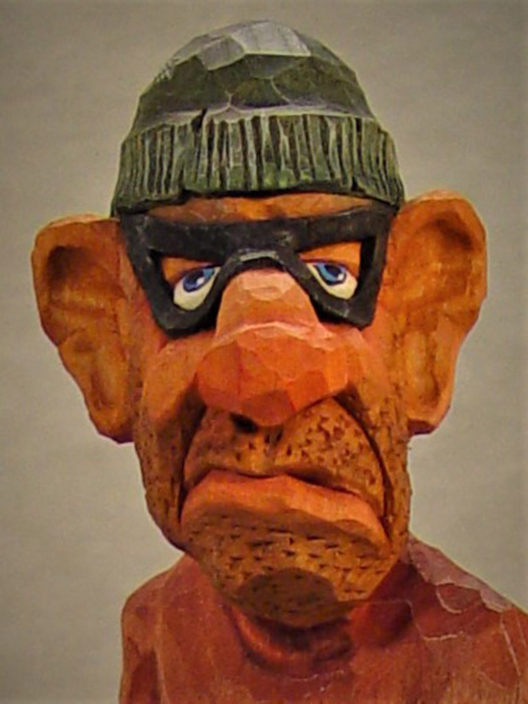 Randy began carving in 1990 at the Woodcarving Rendezvous in Branson. His carvings are heavily influenced by early instructors Ed Zinger, Dave Dunham, and Harold Enlow, as well as the unique and sometimes entertaining situations he encountered during his 33 years with the Wichita Police Department. After retiring from the police department in 2013, Randy served as the Director of Executive Protection at Koch Industries, retiring “for real” in September of 2020. He holds a master’s degree in Criminal Justice from Wichita State University and is a graduate of the FBI National Academy.