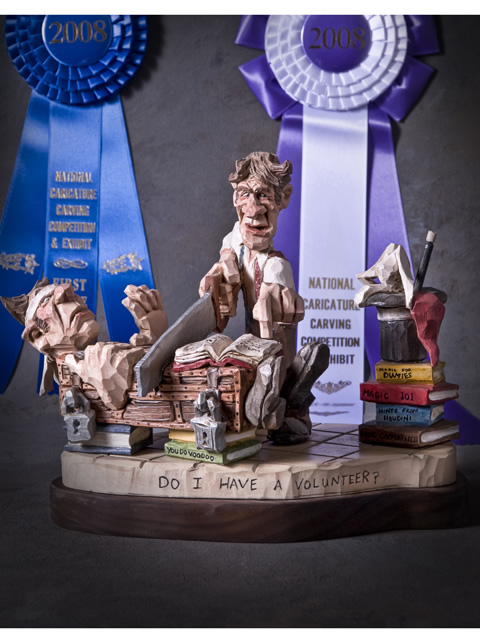 His advice to caricature carvers is “You don’t have to carve cowboys. Carve what you know and love!”