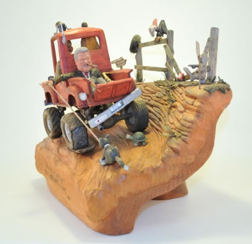 Steve began carving in 1977-78 under the expertise of Harold Enlow. In 1986 he began traveling and teaching the art of caricature carving along with judging competitions. Steve’s various awards include, overall best of Caricature Division at The Woodcarvers Congress, the Henry Taylor award, 2nd Best of Show in the CCA competition and was inducted into the Caricature Carvers of America in 2014.