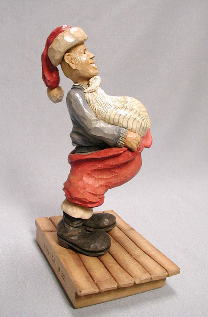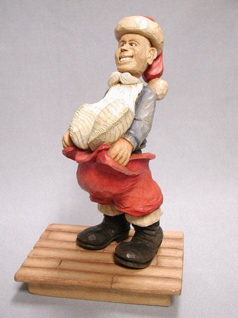 Vic began carving in 1988. He had been building fly rods and tying flies and was looking for a new hobby. His wife Laura purchased an Old World Santa, and a series of lessons from veteran carver Don Brigham as a Christmas present. The combination of camaraderie and working with his hands was all it took for Vic to fall in love with woodcarving. Caricature carving seemed to be a natural path because the embellished features of the carvings fit in with Vic’s sense of humor.