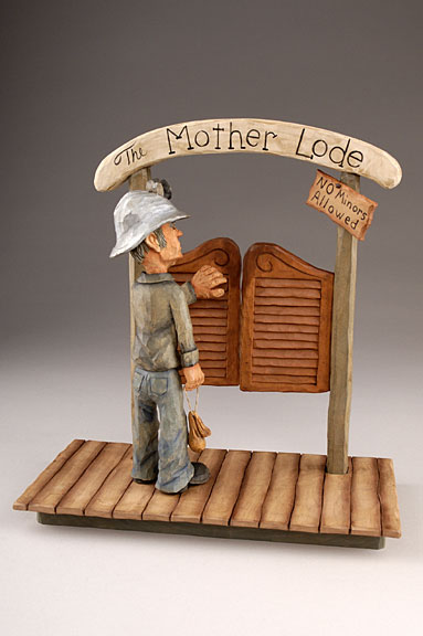 Vic grew up around his father’s cabinet shop and had always shared his dad’s appreciation for a nice product out of a good piece of wood. Vic enjoys mixing real-life detail and exaggeration within the same carving. His scenes generally are based on an actual situation or one that could have happened.