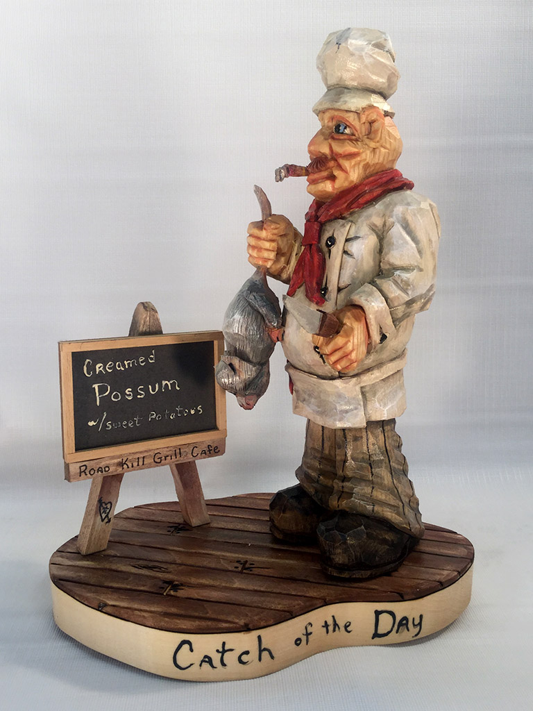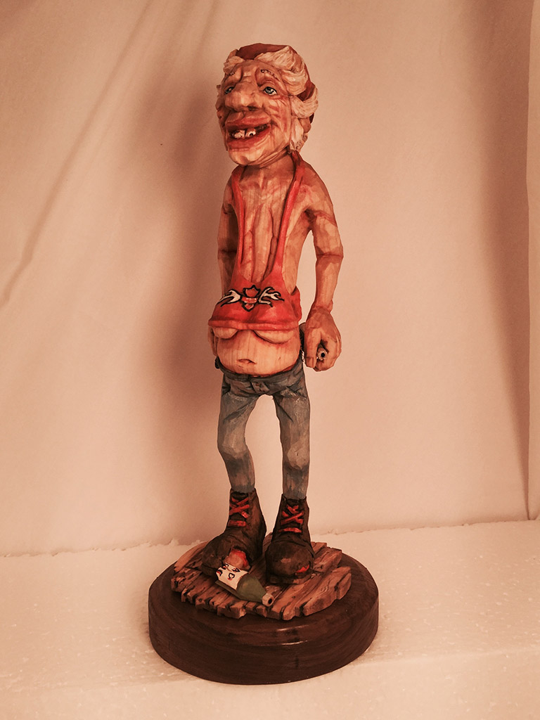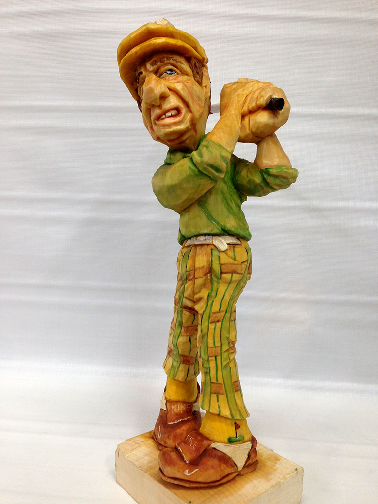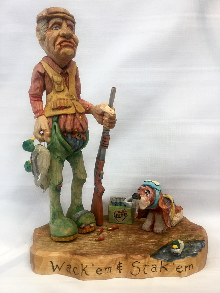 Wayne lives in Sparta, IL. He began carving over 25 years ago. While owning a business and raising two children he carved when he had time. In January 2014 Wayne retired. This extra time allowed him to focus on taking his caricature carvings to the next level.